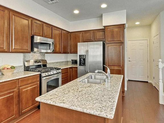 Immaculate 3 Story Townhouse Corner Unit with lots of Sunlight! 3 Bedroom Suites each with their own bathrooms! Hardwood Flr downstairs; Tile Floor in All Baths, Granite Countertop, Ctr Island, Stainless Steel Appliances in Kitchen; A/C every floor; ; Attached 2 Car Garage; Close to shops, I-880 & I-84. Renter is responsible for all utilities. Last month's rent due at signing. No Smoking allowed. No pets.