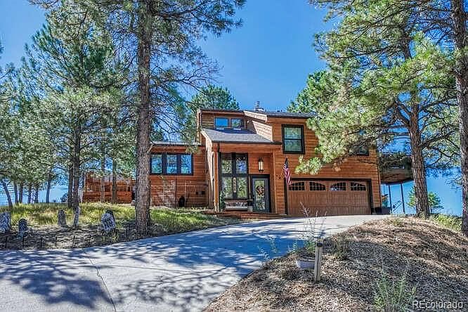 True one of a kind property you have to see to believe! Sitting at the highest elevation in the coveted Pinery Golf Course Community with sweeping views of the entire front range, the unique remodel oozes modern character & rustic charm. Recently redone kitchen boasts new cabinets, beveled marble counters, a tumbled stone backspace, big center island with pendant lights, newer appliances, deep farm sink & wood flooring. Light & bright breakfast nook has cathedral ceiling, new Pella windows & a trifold terrace door which allows you to extend your entertaining space out doors onto the new Trex deck. Hard to find main floor master with his/hers closets; wood flooring; brand new 5 piece master bath with free standing tub, custom vanity & rain head shower; plus a private trex deck with stunning mountain views. Spacious family room offers wood flooring & a cozy fireplace plus 2 story ceilings & an abundance of windows providing never ending views of expansive open space, Pikes Peak & the gorgeous western sunsets beyond. Main floor office which is never more needed than now and well appointed powder bath with new farm sink & toilet. Upstairs you will find 2 unique quest suites + jack n Jill bath. The basement is an entertainers dream with a fun gameroom, a cozy media room with surround sound, & a super swanky hidden bonus room that has been fashioned into a "speak easy". Who needs to go out when you have a basement like that?! 4th bedroom with en suite bath and huge laundry room with built in storage in basement as well. And, if the amazing inside has not sold you, you should see the yard! Newer trex deck with perfect spot for a hot tub has built in gas grill & plenty of room for relaxing. Additional fire pit area & water feature create a wonderful ambiance for all seasons. Water-wise smart sprinkler system + a 2nd trex deck off the master bedroom. Garage with epoxy floors, exterior access door & electric car charging outlet. Too many updates to list...a must see!