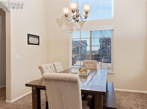 This wonderful 3 bedroom 3 bathroom, move-in ready 2 story home, is ready for new owners. Upon entering, you are greeted with a formal dining room, kitchen and large open family room with vaulted ceilings, cozy fireplace and an abundance of natural light. The kitchen boasts plenty of cabinet space with updated features, a counter bar and nice sized pantry. The main floor also includes the master bedroom suite with 5 piece bathroom and walk-in closet, a half bathroom and laundry room. Upstairs is a loft/office area and two additional bedrooms and 3rd bathroom. The spacious backyard is perfect for entertaining family and friends while gracing you with stunning mountain views. The unfinished basement will allow you to turn it into a dream space and comes with a pool table. This home is conveniently located off the Powers Corridor close to all military installations, shopping, schools, the Colorado Springs Airport and so much more. Don't wait! Call today to schedule your private showing.