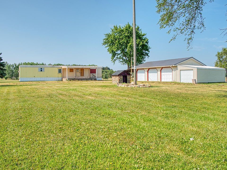 Cash sale only* Country living! HUGE 24x40 garage with 14x40 addition and 14x24 addition! Beautiful 1.5 acre property with fire pit, mature trees and room for a garden. Wood deck. New well house, tank and pump. Older single wide trailer needs work, but has new windows and lots of potential! *Cash sale only*