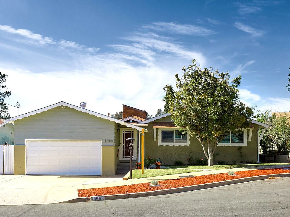 Secluded, end of cul-de-sac beauty has great curb appeal. Spacious, bright LR w/wood burning fireplace opens to FR w/gorgeous wood beamed ceiling! Upgraded baths & granite kitchen. Large deck off DR to yard. Additional seller upgrades incl: NEW A/C, windows, kitchen appliances & w/d, upgraded elect & new plumb, NEW French drain & gutters. Recently added NEW roof & stucco. Enjoy fresh berries, macadamia nut, fig, orange & tangerine trees. Great location near Harry Griffen Park, Dog Park & walk to trolley.