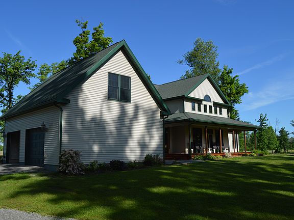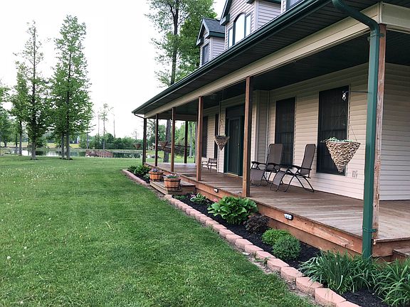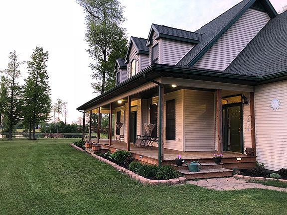 Enjoy 7.6 acres with a 1 acre stocked pond and large outbuilding with this 2362 sqft home! Home features 4 bedrooms and 3.5 baths, wood floors, oak kitchen with stainless-steel appliances and granite counter-tops, formal dining room, living room with balcony from 2nd level and gas fireplace plus a full, unfinished basement. The main level offers two bedroom suites with private bathrooms and the laundry room. The 2-car attached garage features an unfinished bonus/storage room upstairs plus a storage closet under the stairs. The furnace and central air conditioning have been updated. Home also has a large covered front porch, covered back porch and stamped patio. Outbuilding has two overhead doors, a dog kennel, and is half concrete floors and half dirt floors. Pond is managed using eco-friendly tilapia fish and is stocked with bass, catfish, blue gill and algae eaters. Call today to see this property!