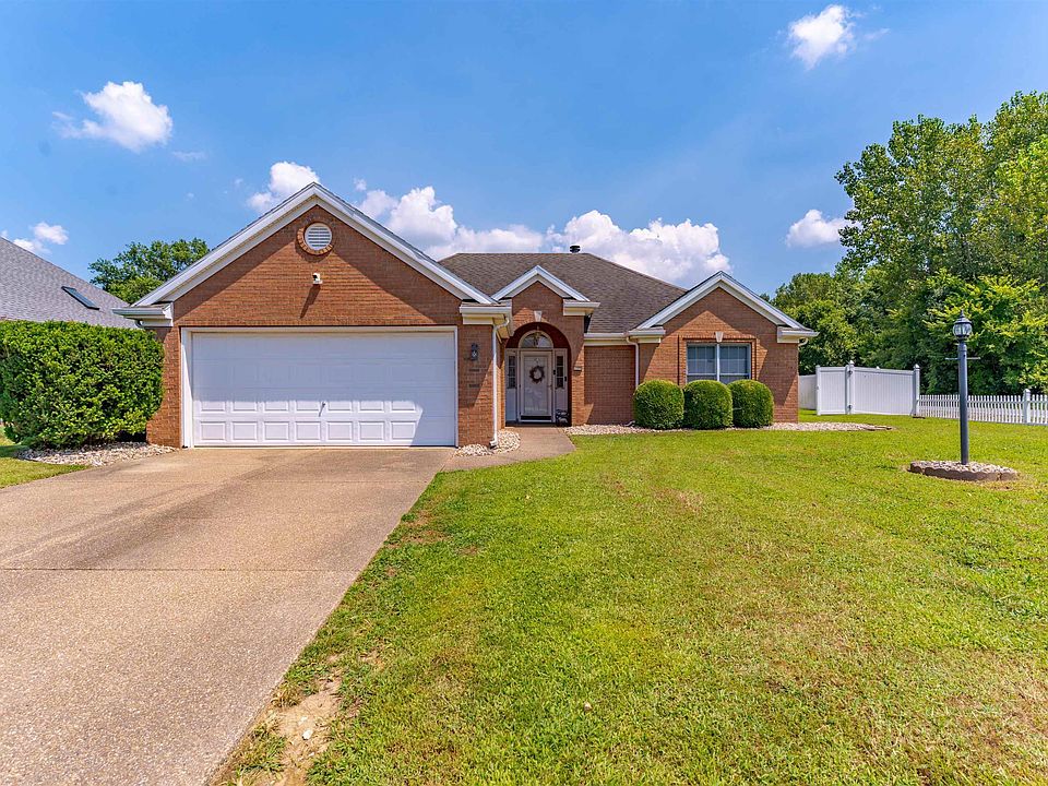 This 3 bedroom, 2 bath brick ranch home sits on a spacious corner lot in Willow Brook Estates! As you walk into the home, you will enter the living room and see the gas fireplace and 10' ceilings. The living room is open into the eat in kitchen with plenty of cabinet space and a view of the backyard from the 2 windows. Just off of the kitchen, there is a laundry room and a walk in pantry. The home has a split bedroom design with the main bedroom, large ensuite bathroom and walk in closet on one side of the fireplace and the 2 bedrooms and hall bath on the other side. With an attached 2 car garage, back patio, and fenced yard, this home has a lot to offer!
