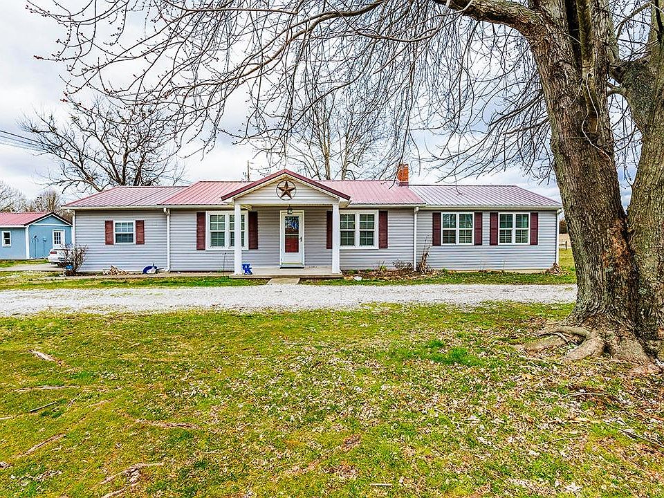 Sweet mini farm for horses, relaxing or recreation! This 3BR/2BA sprawling ranch is perfectly placed on 5.01ac of fenced farmland. Enter the formal living rm w/gas fireplace that leads to a huge great room w/vaulted ceilings, luxury plank vinyl floors & tons of natural light. The updated kitchen boasts a neutral palette, handsome floors, pantry, movable island & stainless appliances. 3BR's, bonus rm + 2BA's including a spacious owners suite w/dual WIC + private BA w/jetted tub. Laundry room and oh-so convenient mud room leading to the rear yard. Covered rear porch overlooks the level yard and fenced field. Partial unfinished basement w/rough-in BA has tons of potential to finish or can be sued as extra storage space. Workshop/storage building adjacent to house plus a run-in shed perfect for horses. Freestanding storage building does not convey w/home.