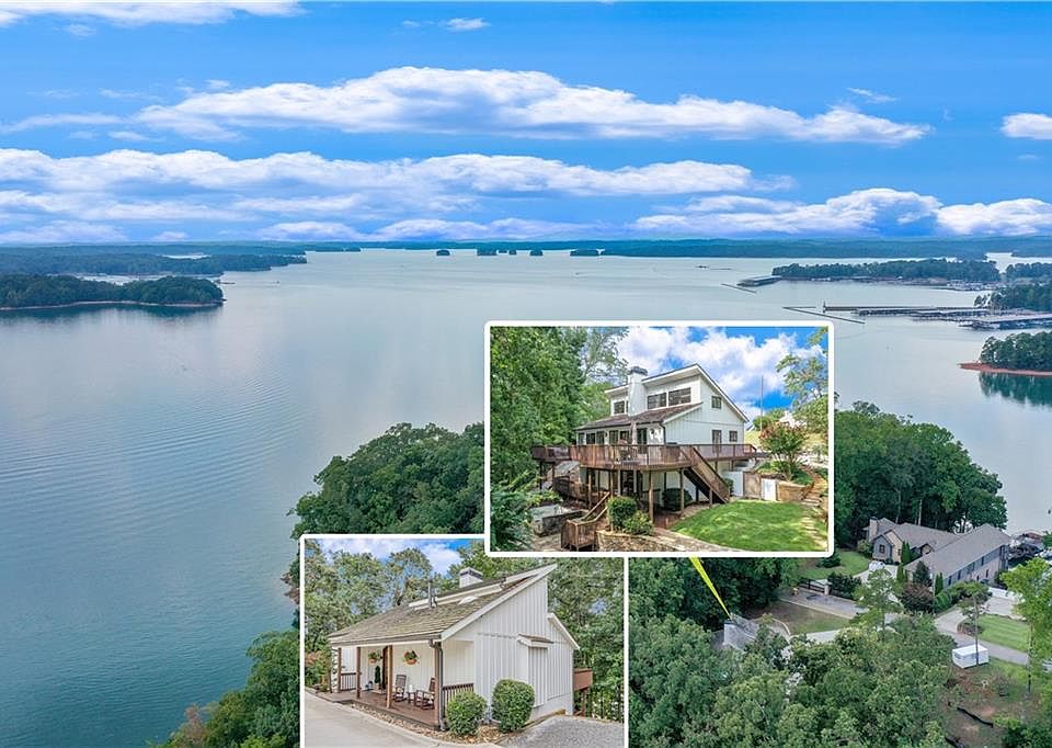 Beautifully updated south end Lake Lanier cottage perfect for a year-round retreat, weekend getaway or investment property! The three bedroom, four bath home is nestled on a point lot and surrounded on two sides by water and COE land. The deepwater 32x32 twin slip dock with party deck is situated on a natural rocky shoreline and there's also a beach area great for playing with the kids and dogs. You'll love the amazing sunsets and location which is minutes to lakeside restaurants and marinas. The sellers lovingly renovated the "Pinterest perfect" home with new flooring, paint, light fixtures and more using current design trends. The open concept main level looks out to the back deck and has high ceilings, hardwoods and fireplace with gas logs. The primary bedroom is spacious and features an en suite bath and two closets. The kitchen has a new tile backsplash and refrigerator. Also on the level is a full updated bath with beautiful vanity, tile and shiplap. Follow the stairs with new iron railings and you'll find a private bedroom with high ceilings and an en suite bath. The terrace level holds a second living area and bar perfect for entertaining guests. A large secondary bedroom with two closets and a cozy built-in bunk space which anyone will love sleeping in. Additionally there is a full bathroom and the laundry. The landscaped yard is an outdoor oasis with several sitting areas, pergola with swing and cute storage building perfect to tuck away the lake toys. The house exterior was just upgraded with board and batten cement siding and along with the wood shake roof provides a great waterfront aesthetic. Whether you're into water sports, fishing or hosting barbeques this lakeside cottage provides endless possibilities for creating memories! Conveniently located to quaint downtown Flowery Branch with restaurants and weekly farmer's market, excellent medical facilities and shopping with easy access to Atlanta. Full list of updates available. Don't miss the opportunity to own your piece of Lake Lanier paradise! Important to know the Sellers need occupancy until the first week of December.