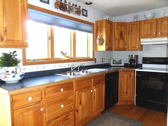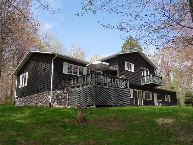 Beautifully maintained and appointed three plus bedroom two full bath country home with home office, eat in kitchen, large deck, balcony off the master suite lower level walkout family room, spacious living room, walk in pantry, tons of storage, beautiful hardwood floors and an attached two car garage all on 2 plus acre nicely wooded waterfront parcel. The home is close to town and nicely landscaped.