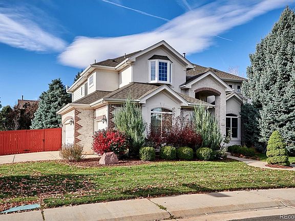 Absolutely beautiful single family home in Orchard Valley, literally connected to Cherry Creek State Park! You will walk into a gorgeous foyer with soaring staircase, amazingly high ceilings and two-story windows that welcome you. The natural light is abundant throughout the main room. There are lovely plantation shutters throughout the entire first floor. The kitchen was remodeled in 2021, to include new cabinets and hardware, quartz countertops, range with hood that vents to the exterior, plus a pantry, island with prep sink and double ovens. A double-sided fireplace between the main room and the main level office. A 1/2 bath and full laundry room on the first floor, and the washer and dryer will stay! The primary bedroom upstairs has an ensuite 5-piece bath, 2 separate walk-in closets and a private covered balcony with mountain views. There are 3 more bedrooms upstairs, with 1 having an ensuite 3/4 bath and the other 2 sharing a Jack and Jill bathroom. The finished basement has a large rec area with built-in bar, a 5th bedroom and another full bath. All flooring on the stairs down to the basement and the main basement area itself was redone in 2021. To complete the lower level, there is a storage and mechanical room off of the lower landing. $15,000 in interior paint throughout the entire home was just done last year. Great three-car side load garage with new MyQ system, and the backyard has a lovely patio, an electronic retractable awning, a swingset and a sandbox that is all included. The fence was also just painted/stained and the landscaping has 100% been kept up. Additional upgrades include a new roof in 2021, new furnace electrical panel, Nest, Ring and ADT alarm system. Radon mitigation is already in place, along with double water heaters and a whole house humidifier. Walk to the neighborhood pool and playground in minutes. With this entire package, it truly doesn’t get any better!