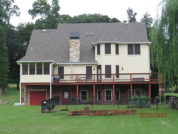Beautiful VERY well designed home with all the luxuries. 2 slip dock with wave runner pads, gradual slope & fire pit. Main level has everything for empty nesters but when Company comes or if you have a lrg family upstairs has 3 bedrooms (1 is another master and 1 is huge!) 2 baths & sitting area. Down stairs in the walk out basement is another living area, full Kitchen, bar, 1 car garage, storage room, workshop and storm shelter. home has built in generator that is auto if power goes out. 2 tankless HW heaters, 4 H&A units, central vac, security system, surround sound, alarm system, well & 24' 3 car garage. Master bath has heated floors & under counter lights. Soft close cabinets (thru-out home), granite & hardwood floors through out home. Many other upgrades & amenities included.