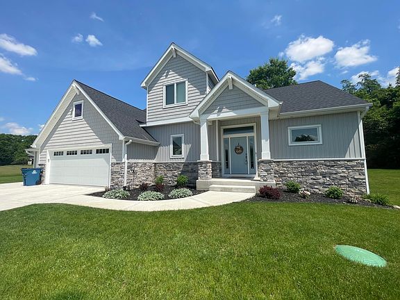*MOTIVATED SELLERS* Welcome to your luxurious retreat on the Bella Vista Golf Course, where elegance and comfort seamlessly blend on this expansive 1.2-acre lot. This stunning 2021 Bob Buescher 3,700 sqft home boasts five spacious bedrooms, offering ample space for relaxation and entertainment. As you step into the grand foyer, you are greeted by an abundance of natural light cascading through large windows, highlighting the elegant hardwood floors that flow throughout the home. The spacious open floor plan effortlessly blends the living, dining, and kitchen areas, perfect for both intimate gatherings and grand entertaining. The heart of the home lies in the totally custom gourmet kitchen, complete with top-of-the-line stainless steel appliances, custom cabinetry, and a center island ideal for culinary creations. Imagine preparing meals while overlooking the picturesque fairways of the Bella Vista Golf Course. Walk directly into an oversized butler panty which hosts all small kitchen appliances perfect for prep and maintaining that picturesque kitchen. Retreat to the lavish primary suite, a sanctuary of comfort and style. Featuring a spa-like ensuite bathroom with a soaking tub, dual vanities, and a walk-in shower, this space offers the perfect escape after a day on the course. Head up to the second floor and let the automatic lights illuminate your path- proving just how custom this home truly is. Here you'll find 3 large bedrooms, one full bath with double vanities and an extremely generously sized landing perfect for an addition living space, play room or theater room- the options are endless. On your way to the oversized finished lower level you'll pass through a main level 1/2 bath, perfect for entertaining and a private main level laundry and mud room conveniently located off the 3 car garage. Walking down the steps you'll be met with a surprisingly amount of natural light gleaming in from massive oversized egress windows. You can find an entire additional living/family room perfect for entertaining, movie nights, and nearly doubling your usable square footage. The rest of the lower level hosts your fifth and final bedroom and an entire additional full bath plumbed and just waiting your final design choices. Step outside to your private oasis, where a spacious patio, and a manicured and irrigated lawn await you, providing the perfect setting for outdoor living and entertaining. Enjoy the tranquility and privacy of this expansive lot, surrounded by mature trees and the rolling green fairways of the Bella Vista Golf Course. Don't miss this extremely rare opportunity to own a piece of paradise in this prestigious community located in Ovid township known for its low tax rates blending luxury and affordability making this location TRULY ideal for any buyer.