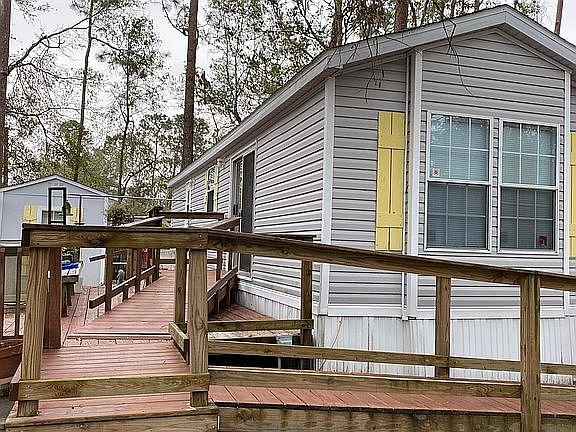 RELAXATION AT ITS BEST! Come see the showstopping red deck on this cozy home tucked away in the trees. Kick back on the large deck with a glass of sweet tea and enjoy all of the pleasures of the outdoors. Well maintained with an extra NEW outdoor storage shed plumbed and vented for a washer and dryer. NEW APPLIANCES, NEW ROOF, AND HAS NEW LVP FLOORING THROUGHOUT!!!! If you have ever dreamed in living or owning a vacation home in popular Spanish Cove, this is a great opportunity. Spanish Cove community amenities include a beach, a fishing pier, tennis courts, a club house, and much much more! Schedule your showing today. Transfer fee is $100/lot and POA buy-in fee is $500.