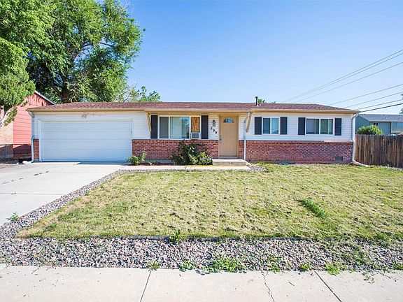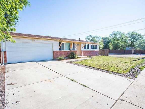 This lovely ranch home is located close to Fort Carson and Peterson Air Force, shopping, schools, and parks* It sits on a large corner lot* As you step inside the home you will be greeted with the Living Room, which features beautiful wood floors, a ceiling fan, and large windows that allow natural light to pour into the home* The eat-in Kitchen has a window cut out that looks into the Living Room* The Kitchen has ample cabinet storage and a window above the sink* Just off of the Kitchen is a Laundry area with shelving* The Master Bedroom has an adjoining Bath* There are 2 additional Bedrooms and a Full Bath* The Backyard has 2 concrete patios and a dog run*