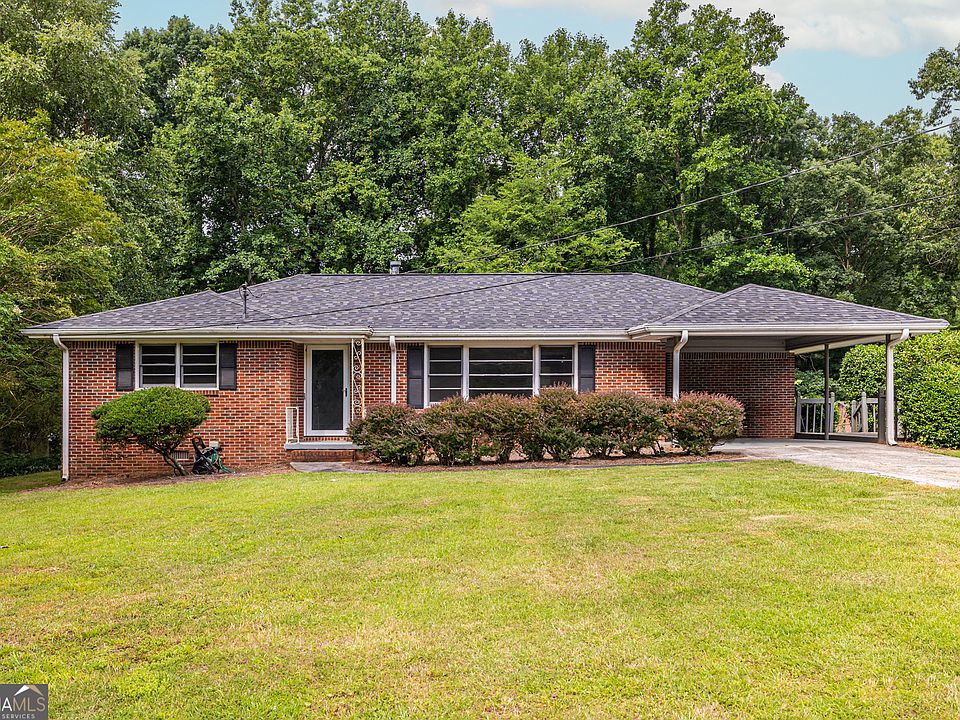 A rare opportunity awaits you...This cozy 1960's Mid Century Ranch on a quiet street is the perfect home to make your Own. Three Bedrooms, One full and One half bath. All Brick with a large attached carport and extra covered parking. The classic 1960's kitchen features stained wood cabinets, in wall oven and a flat cooktop plus a true keeping room with wood burning fireplace. Large light filled living room with huge windows across the front of the house. This home is located on a large half acre lot with ample space for expansion. This quiet neighborhood is centrally located with shopping and dinning options with access to I-85, 316, Ronald Regan Parkway and Lawrenceville Parkway. The home features hardwoods throughout. Pull back that carpet and you have the option of beautiful hardwood floors.