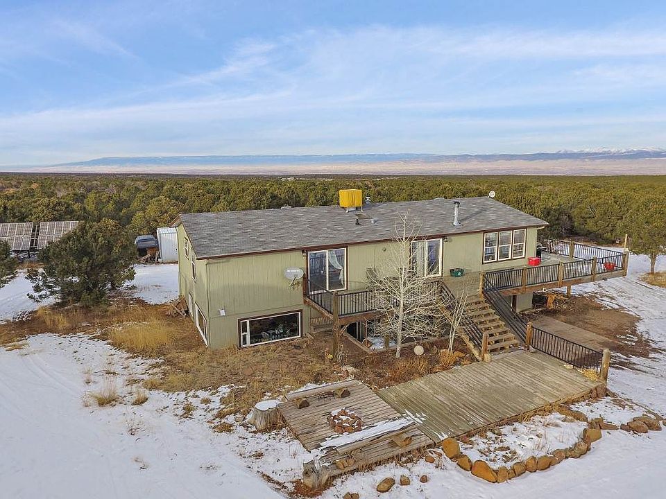 Open floor plan offers spacious living room with a wood burning fireplace, large windows and 2 sliding glass doors to access the large deck that runs the whole south and east sides of the home. From sunrise to sunset, you can enjoy the unobstructed views of the San Juan mountains, wildlife, stars and milky way every day. Large master suite with walk-in closet and another sliding glass door to access the deck on the south side. 2nd bedroom, full bathroom and laundry room on the main level. Lower level has a newly finished studio apartment with large bathroom, beautiful custom trim, walk-in closet and pellet stove. The basement is made up or ARXX block giving 12" thick walls, great for the RH factor and quiet. Solar panels, 15k Onan propane generator, and Crown forklift batteries for power storage and great well water means no electric or water bills. Surrounded by trees you have privacy,