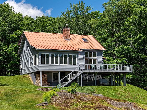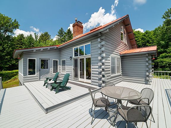 Sunlight pours in to this charming log home in Windham. It is exceptionally well sited to take advantage of the landscape, exposure and view. Many large south facing windows allow for ample light inside and the large deck that surrounds the home extends the living space to outside. Discover the space in between, a large sun room just off the living area, perfect for enjoying the sunset year round. Enter through the mudroom and into an open concept kitchen and dining area. Take in the cozy atmosphere with soaring ceilings and warm wood tones throughout. In the living room enjoy a fire in the wood burning fireplace. This thoughtful layout includes 3 bedrooms, one on each level. The ensuite on the top floor opens to a loft area for extra sleeping or an office. The nicely sized main floor bedroom has an adjacent bath. This great home on 14+ acres has direct trail access to VAST trails. The land is filled with wild berry bushes and a hidden stream complete with a waterfall. All of this is within a short distance to year round recreation including farmers markets, summer theater, 5 local ski areas and so much more of what Vermont offers. Call for a showing today!
