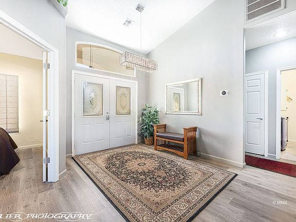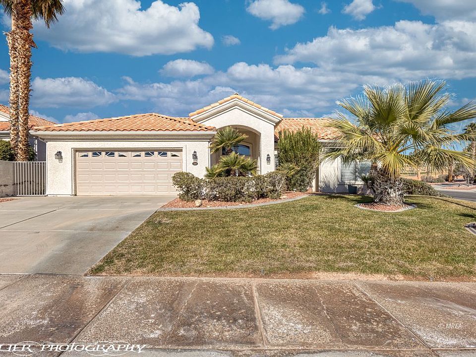 Great location, No HOA and a Pool. As you enter the large double door entry, to a huge vaulted living room with new LVP flooring, take a look out the large picture windows over your in-ground heated pool to the Canyons Golf Course behind the home. The expansive great room is adjacent to the dining area with an eating bar looking into the kitchen. Tons of cabinet space and a large corner pantry. Just off the entry sits the first bedroom which connects to a hallway that also holds the second bedroom and guest bathroom. The master bedroom is amazing with a patio door to the heated pool and back patio. A large jetted tub, walk in shower, double sinks and large walk-in closet complete the master suite. Out back you will find a large covered patio, Large heated pool and amazing views of the Canyons Golf Course! The pool also has a brand new automated cover for safety and energy efficiency!Mesquite offers world class golf courses, large casinos, fine dining, only 80 miles to Alas Vegas, just a few hours to Zion National Park, only an hour to Valley of Fire, 36 miles to Saint George. Mesquite has beautiful sunsets, hiking trails and miles of ATV/UTV trails to explore