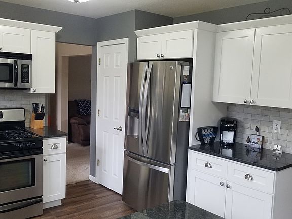 A wonderful family home with a location that offers the best of everything, it's located in a great neighborhood just out of town (think lower taxes) but close enough to make the trip in quick and easy. Kitchen/laundry was completely remodeled in the last year or so including flooring, cabinets, granite counter tops, some custom cabinets in the laundry including a utility sink. Lower bedroom could make an office if needed. Basement is partially finished in a family/exercise room plus a separate mechanical room with shelves for a ton of extra storage. Back yard is fenced for the kids or critters. Home is well kept, tastefully decorated and worth taking a look at. All listing info/measurements are approx.