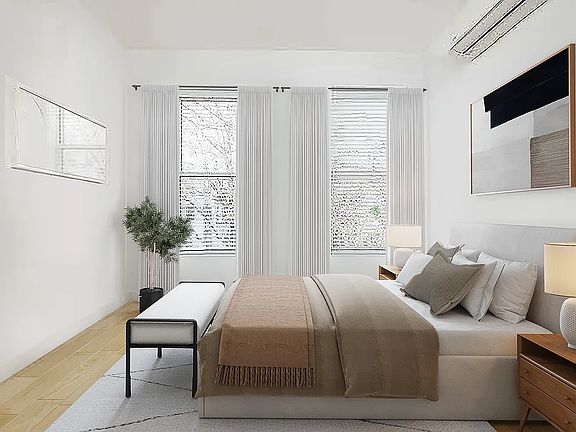 With 4 bedrooms and 2 full bathrooms, this residence boasts spacious bedrooms and a generous living room adorned with stylish exposed brick. Enter into the kitchen, equipped with stainless steel Samsung and LG appliances, including a dishwasher, gas range, and a convenient breakfast bar. Every room is graced with windows that allow natural light to fill the space, complementing the hardwood floors and soaring high ceilings. Enjoy the comfort of recessed lighting, controlled heating, and A/C units, as well as cable and internet hookups. Additionally, within the convenience of your own home, you'll find a vented washer/dryer. Nestled on a peaceful, tree-lined block in Greenpoint, 599 Morgan Avenue is an intimate 3-unit townhouse. Embrace the tranquility of this location, where you can escape the hustle of the city while still being only a few blocks away from its vibrant energy. Enjoy the proximity to McGolrick Park, Citibike stations, and B48/B24 bus services, with the Nassau G and Graham L subway lines just a stone's throw away. Please inquire about pricing structure.