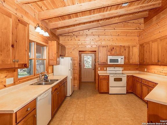Located just 4 miles north of Utopia in the middle of the beautiful Sabinal Canyon, this new listing is the perfect weekend getaway or retirement property. Rarely is the term 'one of a kind' accurate, but this unique property is definitely a one of a kind in Bandera County. The tract offers a country style home built by a respected local builder, recently paved county road to within yards of the property, internet and phone available, partial game fencing, excellent water well with treatment system, end of road privacy, excellent interior roads, secondary meter loop and a RV, cabin or second home site. The home is located on top of a small hill covered with large Oak trees that create a canopy of shade for the large manicured yard. The property also has access to a River Park on Sabinal River. There are few properties in Bandera county that offer the setting of this home, with absolutely incredible 360 degree views of the Sabinal valley and hundreds of square miles of the surrounding Hill Country. The custom home is on concrete slab, offers limestone exterior, metal roof, large full length porches front and back, attached 2 car parking garage, circle drive, large rock patio and extensive landscaping with rock walls, terraces and stone walkways. The home offers 2 bedrooms, 2 baths, large utility/mudroom, open living area with vaulted ceiling and working fireplace, lighted dining area, open kitchen with ample counter space, cabinets and breakfast bar. The flooring is tile throughout the home, all wood interior, ceiling fans in all rooms, abundant closet space and amazing views from all points in the home. The eastern portion of the property has been cleared of most of the cedar but the western portion has been left in its natural state, leaving heavy to medium brush as cover for the large numbers of whitetail, hogs, turkey and dozens of free ranging Axis Deer. A small wet weather pond provides water to the large numbers of game and the owner has set up multiple feeders and water stations around the property to supplement the game.