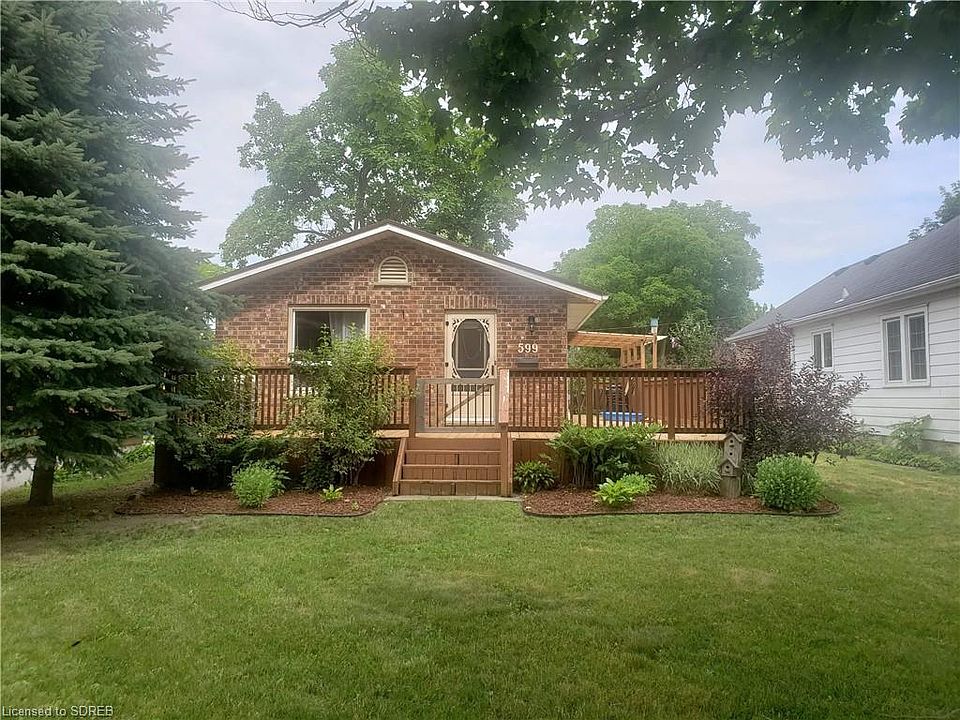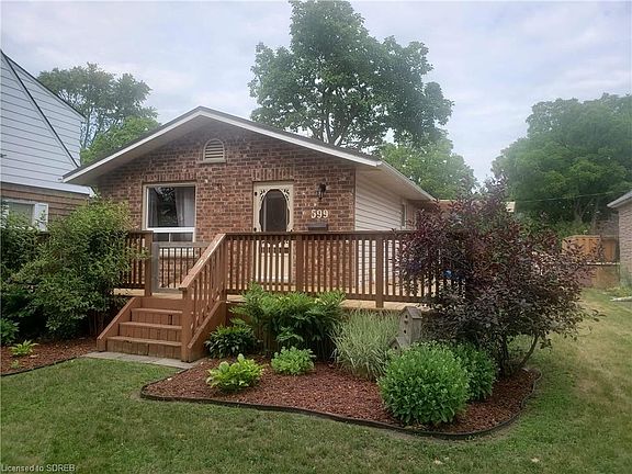 Welcome to 599 Norfolk Street, North! A well maintained brick and vinyl bungalow with mature trees and landscaped gardens. Access is from a private laneway off of First Ave. The main floor features an updated kitchen, dining room/living room with a gas fireplace,3 bedrooms and a 4 piece bathroom. On the lower level there is a good sized family room, a second bedroom with walk-in closet, second bathroom, an office and a workshop. Upgrades include steel roof (2018) and central air (2018), basement flooring (2019), and plenty more! The wrap around deck with natural gas BBQ extends your living/dining area outdoors. Come on home!