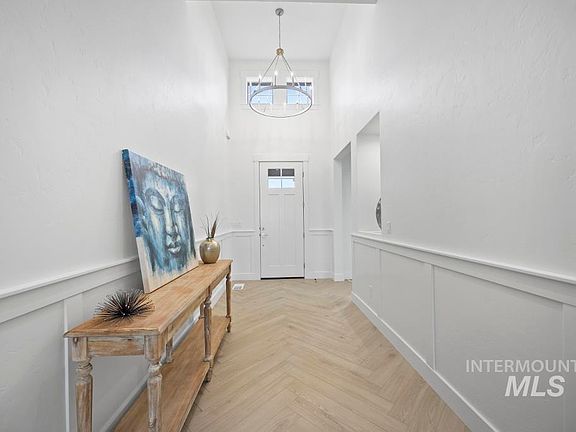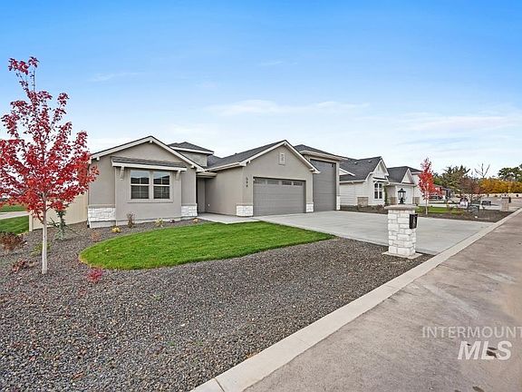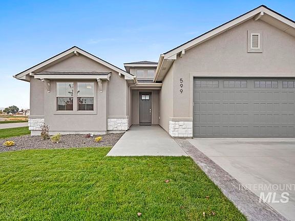 “The Bella Donna” by award-winning builder Brookstone Custom Homes. This stunning single-level design features a spacious entryway that seamlessly leads to the main living area. The open split-bedroom layout includes 3 beds, 2.5 baths & 45’ RV bay. Kitchen is filled with natural light, showcasing quartz counters, built-in appliances, island/breakfast bar, custom cabinetry, and walk-in corner pantry—all overlooking the dining area and great room, which boasts a floor-to-ceiling stone fireplace and dedicated office nook. Primary ensuite offers soaker tub, separate walk-in shower, dual vanities, and walk-in closet w/laundry access. Nestled in a prime location, this home offers views of the Owyhee Mountains, along with convenient access to the nearby 10-Mile Interchange. Enjoy the nearby amenities and attractions while savoring the tranquility of this peaceful setting. Located at the front of a quiet cul-de-sac in Britannia Heights, this large corner lot spans 0.41 acres, providing privacy and exclusivity.