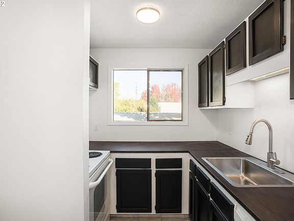 Why rent when you can own? Ready to move in with new range, countertops, flooring, paint & fixtures. Unique to find this price with this condition and space. Convenient location to public transport: max, bus, freeway. Light and bright. In unit laundry. Low monthly HOA dues cover sewer, water, grounds maintenance & insurance. Enjoy your private balcony and sit near the trees, accessed from living room or primary bedroom. Your own covered parking spot, storage closet, guest parking available.