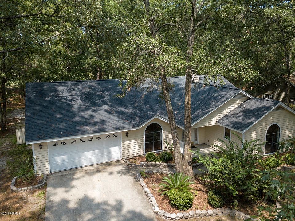Located on the highly sought after Lady's Island in the Royal Pines Country Club subdivision, only minutes from Historic Downtown Beaufort, shopping, boat ramps, and Military bases, this FOUR bedroom, 2.5 bath, one level home rests on a little over half an acre lot and overlooks the golf course. Vaulted ceiling, wood beams, and beautiful arched windows offers that wow factor. The extra large utility room includes a sink with built-ins and is located off the kitchen and garage. NEw roof in 2018, stainless appliances, and NO FLOOD REQUIRED!