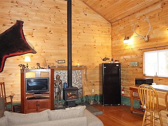Spacious cabin on 17.49+/- acres. Located on a year round road offering direct access to the main corridor snowmobile trail C4 + close to ATV trails - ride right out. Less than a mile to the reservoir for excellent boating, fishing & swimming. Plenty of your own land to hunt + 1000's of acres of state land nearby. Cabin features cathedral ceilings with pine tongue & groove with large sleeping loft. Wood stove supplies all the heat you'll need. One car attached garage offers plenty of storage, or can easily be converted into a bedroom. Ready to enjoy with pool table & furnishings included. Underground electric service but does not have well or septic, plenty of room to add plumbing if desired. Property consists of two parcels combined in sale - keep both or resell one!