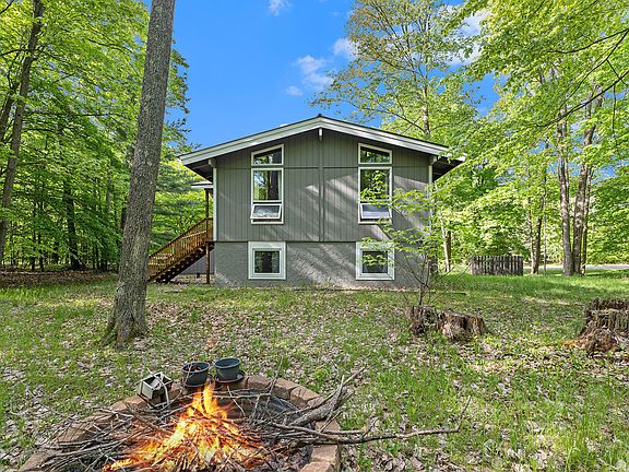 **Seller offering $10,000 to buyers to relocate the spiral staircase. All-seasons home amongst the mature hardwoods w/extra lot for complete privacy. Impeccably maintained 4 Bd/2 Bath chalet with many updates situated on a private double/corner-lot in Michaywe. New expansive second-story deck provides indoor/outdoor entertaining and a beautiful view from up in the trees. New flooring throughout. Updated bathrooms. Freshly painted exterior. Newly coated driveway on county-maintained paved road 10 minutes from downtown Gaylord. 30 x 24 freestanding garage. Flexible floor-plan for welcoming lots of friends and family on both levels or use as two separate living spaces (center stairwell can be locked off, separate exterior entrances for both levels, mother-in-law suite or rental opportunit