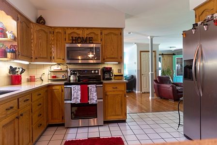 Large beautiful home tucked away on 3.75 acre wooded lot. Updated appliances, lighting and cabinetry. Stunning sun room welcomes natural light into the home and provides easy access to outdoor deck. Open floor plan is complimented by remarkable accent walls. Attached two-car garage and basement provides plenty of storage for your belongings.