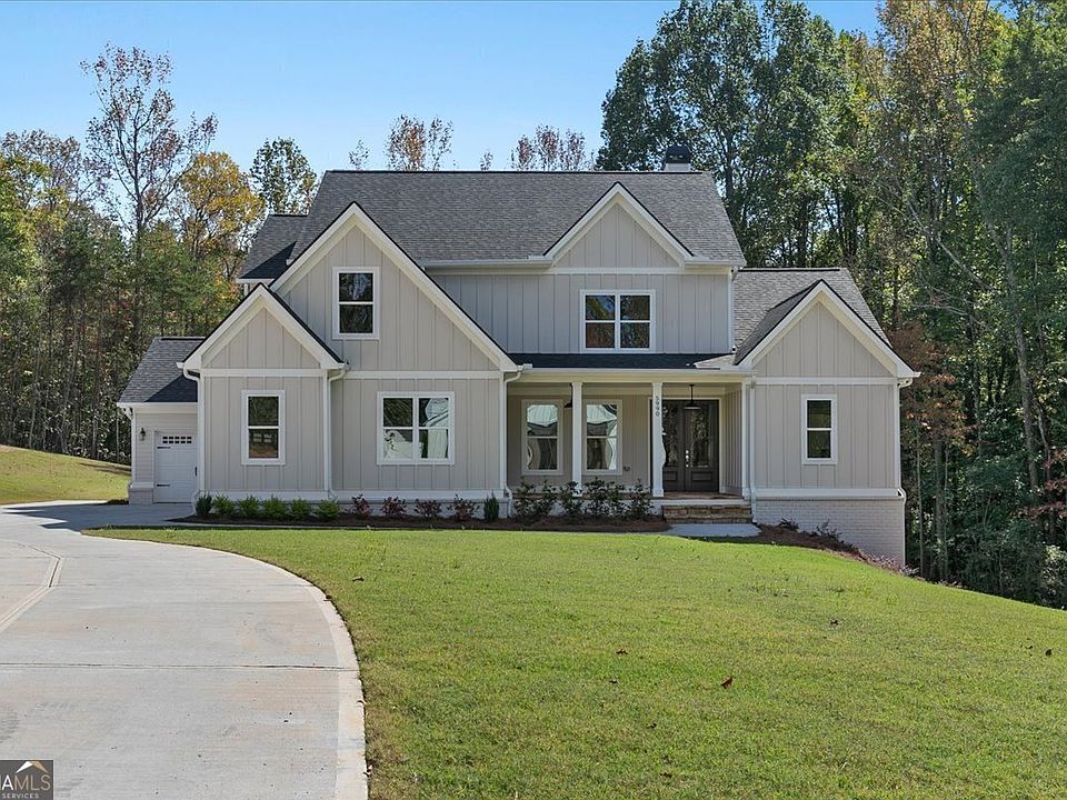 NEW CONSTRUCTION NEW PRICE!!! -this is your opportunity to get a move-in ready new construction! BUILDER CLOSING OUT!! CLOSE by early December and spend Christmas in your new home !This is 1 of the last 2 new construction basement homes in the subdivision. This farmhouse inspired inspired New Construction is one of a kind. Master on Main 4 bedroom 4 1/2 bathrooms. Sitting on 1.36 acres this home's privacy is protected. The natural creek adjacent to the property and deep wooded backyard make this an oasis. Sprinkler system keeps everything hydrated automatically. The oversized flagstone front porch welcomes you through the Double Front Door. Large foyer is flanked by the Flex/Formal Dining room. Past the staircase view of the beamed family room overlooks the 12 foot Quartz topped Kitchen Island. 13 feet of unobstructed Quartz countertop and cabinets allows baking, charcuterie boards prep, smoothies, cappuccino all being prepared simultaneously. Chat with guest seated at the island as you prepare vegetables using the workstation stainless steel sink's custom made colanders and cutting board. Cleanup is a breeze with the 2 can trash drawer and dishwasher located on either side of sink. The back wall of kitchen houses built-in microwave and convection oven, 5 burner gas cooktop with griddle, cabinet enclosed Fridge opening is conveniently located next to the walk-in pantry and dining area seating 12 comfortably. Mud room with built-in bench is accessed by either the 2 car side entry garage or the front entry carriage garage. Laundry room is off the mud room so dropping gym bags is conveniently done before entering the kitchen. The view of the bookcases on either side of the family room's stone fireplace allow for multiple choices for entertainment equipment placement. Burn wood or convert gas starter to accommodate gas logs. Walk out onto the covered deck and enjoy a football game in front of the outdoor fireplace.Powder room off the hallway to the Master bedroom completes the public areas of the house. Bedroom windows face the backyard offering a view of the natural beauty. Separate his and her vanities, free standing soaking tub, glass enclosed shower and water closet complete the master bathroom. The engineered hardwood floors on the main level and upper level hallway are stained a rich medium brown. Mudroom, master bath and laundry are tiled for both function and beauty. 2 of the bedrooms on the upper level each have private 1/2 bathrooms with linen closets. Both bathrooms have separate access to the shared tub/shower room. The 3rd bedroom has it's own private full bathroom. The unfinished basement has been stubbed for a bathroom. There are endless possibilities to finish to your preference. There is access to the outdoors and several areas with windows for additional daylight rooms. Builder's preferred Lender is Barrett Financial- Candice Crook 678-227-2169.- Lender Credit $2,500. Closing Attorney is Kim & Bagwell LLC. Listing Agent does all paperwork for contracts. Schedule showing using Showingtime
