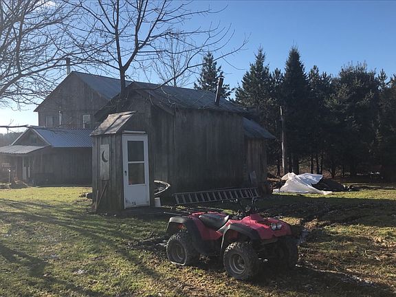 This beautiful open-floor, 4 bedroom home sits on 45.2 acres of peaceful land. Electricity is supplied by a 48 volt solar system with an independent array of 15 solar panels. There is a spring fed pond for swimming and fishing with a bungalow/ hunting camp near by. There are several out buildings that provide workspace and storage. The home was built by owners with most of the lumber cut from the property and milled by a local sawyer. It is standard construction with exposed beams to add to it's rustic, sturdy design. This property is located on a town maintained road with over a half mile of road frontage and has a 20 acre woodlot.