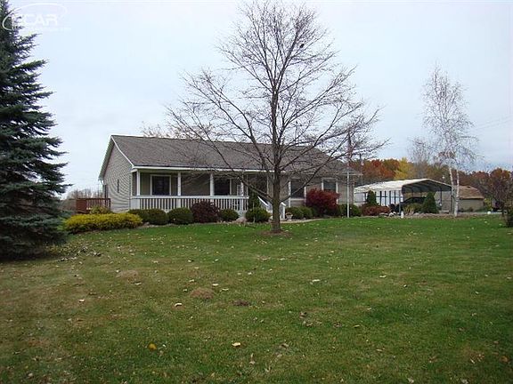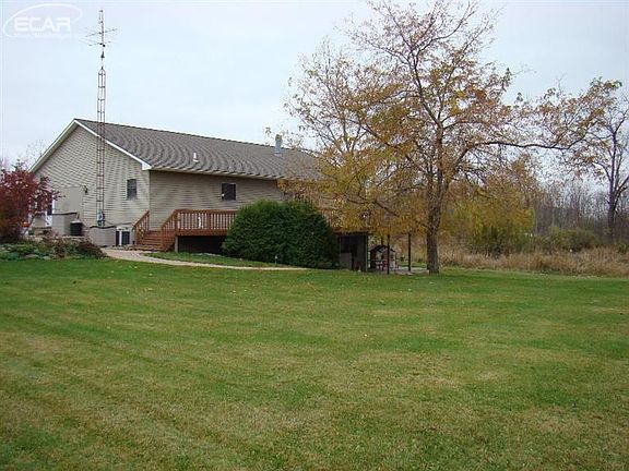 Very well maintained home on over 5 acres in high demand Goodrich School District with Lapeer Co. taxes. Finished walkout basement features: additional full kitchen/bath and living room. 2nd laundry room and 2 bedrooms plus private paved patio. Front covered porch with ceiling fan. Enjoy sitting on the back deck overlooking pond and an abundance of wildlife. Open kitchen/great room with natural fireplace. Hardwood floors in cozy family room and kitchen. Main and lower level laundry rooms. Pole Barn is 30x40, two doors allow pull thru option, cement floor and electricity. Natural Gas available at road. With over 4,000 square feet of living space this is one of the best deals on the Market. Schedule your showing appointment today!