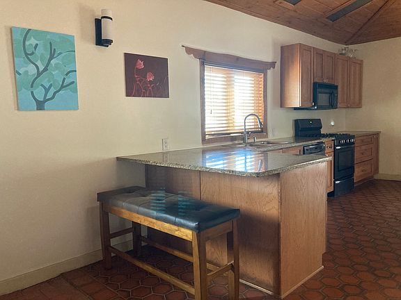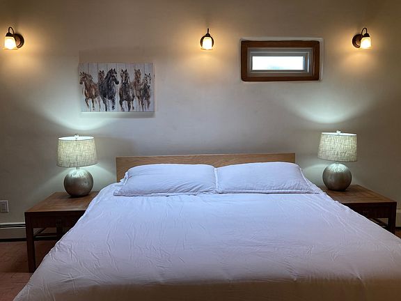 Adobe home, naturally well-lit, with roomy bedrooms, generous great room and additional seating area, fireplace, pantry, washer/dryer. Updated kitchen and bathrooms with granite countertops. Enclosed, landscaped front courtyard on a drip irrigation system. Enclosed backyard with shade. 10 minute walk to the Bosque trails along the Rio Grande. Charming Corrales Village cafes, shops, and farmer's market nearby. A well-behaved pet may be considered with a monthly pet fee. First and last months' rent plus security deposit. Well water and septic included. Gas, electric, internet/cable, trash pickup, low maintenance yards are renter's responsibility. Well-behaved pets considered with reasonable pet fee. No smoking. Unfurnished. 1 year lease.