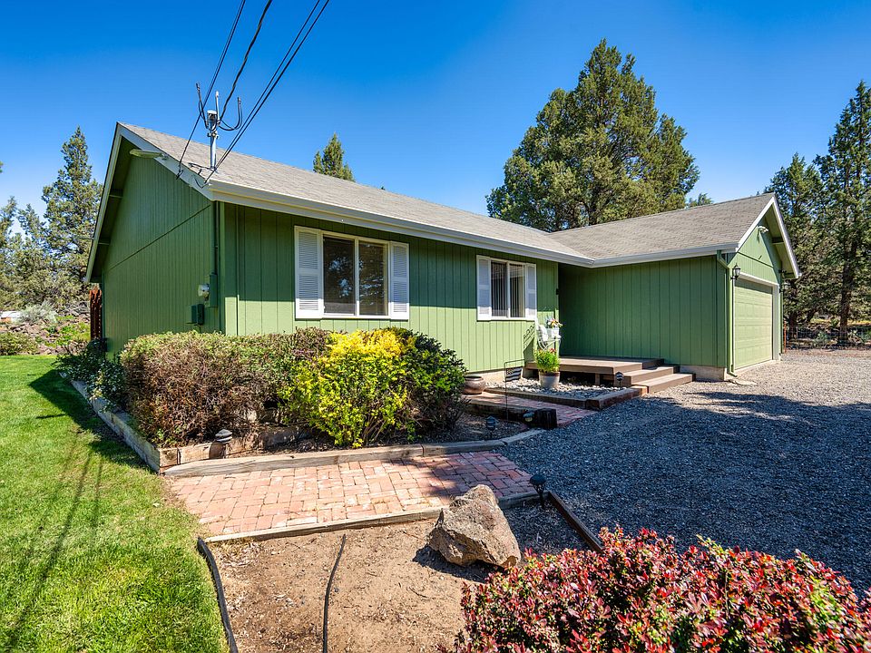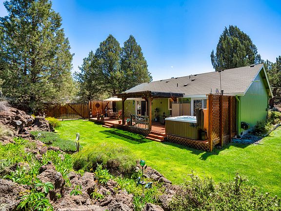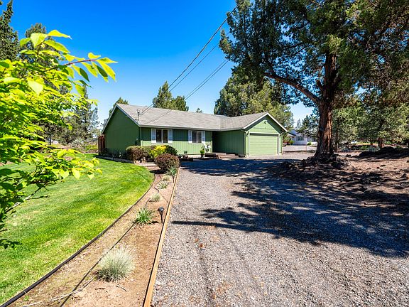 Small acreage and endless possibilities await you in Tetherow Crossing, one of Redmond's most desirable neighborhoods. This single-level 1,317 sq. ft. 3 bedroom, 2 bath ranch-style home on 2.27 acres offers tranquility, community, and convenience. The circular driveway, attached insulated two-car garage (with generator ready plug-in), RV spaces and carport give you ample room for your vehicles. Beautifully landscaped front and backyard with grass lawns, lava rock outcropping and full fencing ensure privacy and security. Backyard includes a deck, swing, and hot tub. This cozy home (and deck) has fresh exterior paint, newer flooring in the main living spaces and updated sink w/touchless faucet and quartz countertops. Primary bedroom has an oversized walk-in closet and slider for backyard access. Located just .3 miles from the Deschutes River for swimming, floating, fishing or a quick trip around