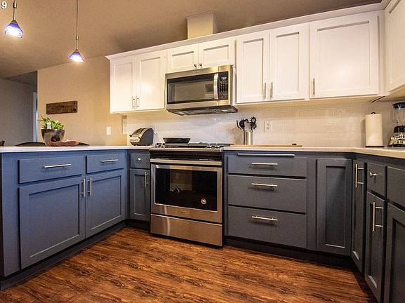 Updated two-tone Shaker kitchen with quartz countertops, tile backsplash and stainless appliances. Easy care wood-look vinyl plank flooring throughout living spaces with upgraded tall baseboards. Updated bathrooms with quartz countertops and Shaker cabinets. Bonus space can work as an office, second living space, playroom.Garage with new door and built-in storage. Conveniently located to schools and parks with easy access.