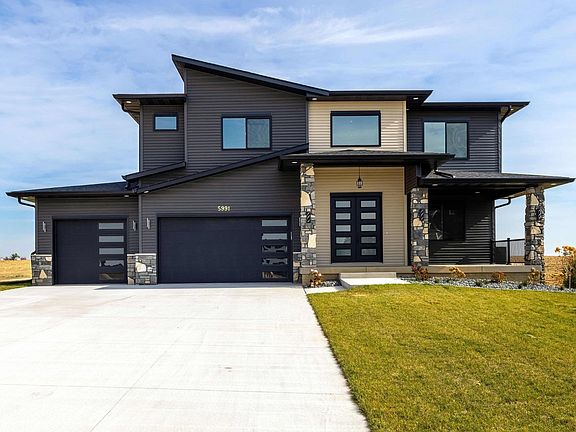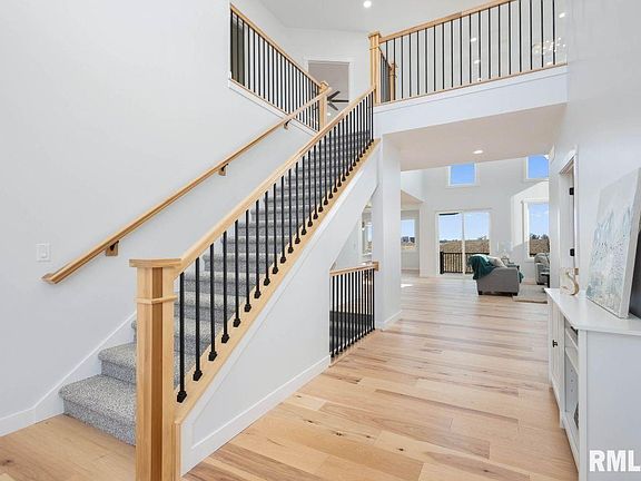 A Must See Open floor Concept Plan. Starting with the large 2 story entry way. Next the beautiful kitchen which features a tray ceiling over a large waterfall island that seats 5. A large 7 X 9 walk-in pantry, lots of cabinets and counter space plus enjoy the informal dining area. The kitchen opens into the spacious 2 story living room overfilled with lots of natural light, coffered ceiling, electric fireplace, shelving and sliding doors to the maintenance free deck. The main floor also offers a bedroom with a full bath that also could be used as a office. The second floor has 3 bedrooms each with its own private bath. The master features a tray ceiling, walk-in closet, double sink vanity, free standing tub, and rain fall tiled shower. Second floor laundry. The walkout basement features a 5th bedroom, full bath, wet bar and office space.