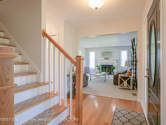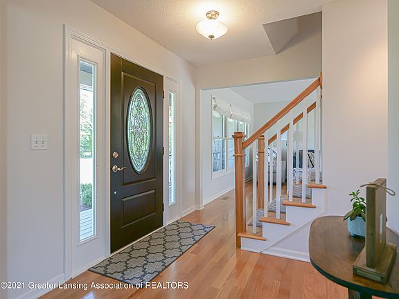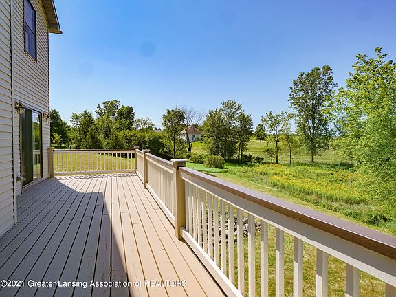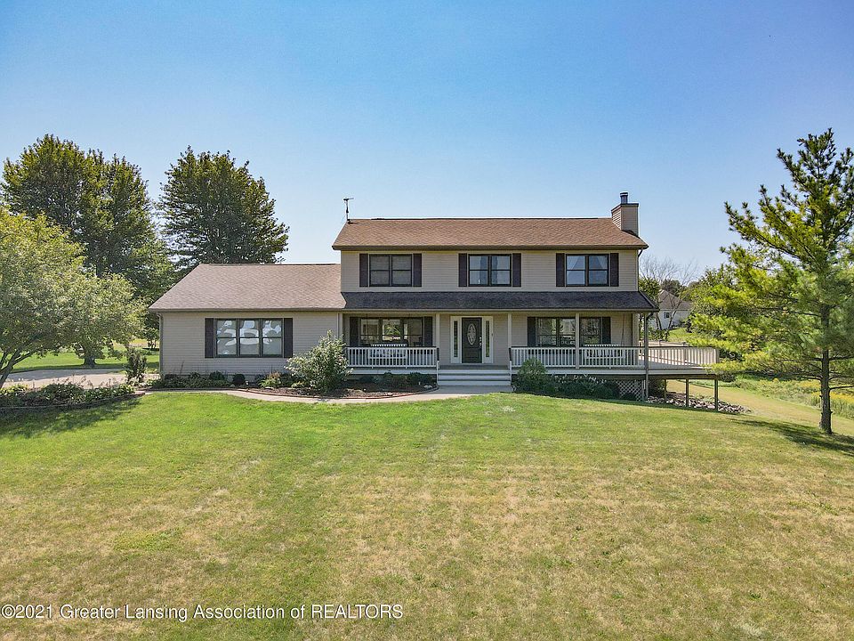 Welcome home to 5991 W Clark Rd! This beautiful 5 bedroom, 3.5 bath home is situated on a large 2.05 acre parcel in Lansing, MI. An inviting foyer greets you upon entering and leads into a spacious living room with a wood burning fireplace. A bright dining room sits just off the kitchen and offers beautiful views of the incredibly landscaped property. The large kitchen features plenty of cabinet and countertop space in addition to a large island and stainless-steel appliances. Upstairs you'll find 4 bedrooms, including the master suite with a beautiful private spa bathroom. The full finished walkout basement offers a large great room, 5th bedroom, and a full bath. Outside enjoy the beautiful views from the wrap around front porch and enormous back deck. This property also features a large pole barn with a new door/opener and a resealed driveway! Additional features include: a radon mitigation system, new retaining wall, a whole home generator, and a water filtration system!