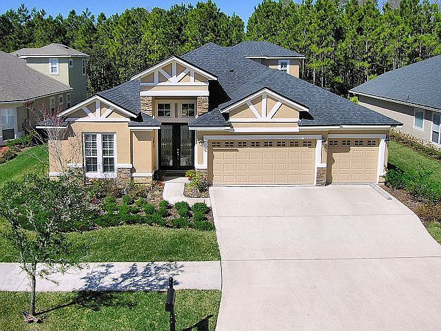 What a find! Spaciousness, Privacy, & Location - all rolled into one beautiful home! High ceilings & a grand foyer greet you at the door, opening up to a large & bright dining room/living room combo. Enjoy the peaceful preserve views from your open-concept family room & kitchen. Plus, bedrooms are divided into three separate areas so each family member can have their own private retreat. You'll enjoy hosting outdoors on your large patio, & the kids will have so much fun playing in the lush grass of the huge fenced yard. With a fantastic neighborhood elementary school, and beautiful amenities, you'll find you rarely want to leave Bartram Springs! And the lap pool, slide, play pool, fitness center, playground, soccer fields, & more, you'll feel as though you're at a resort! Come See today!