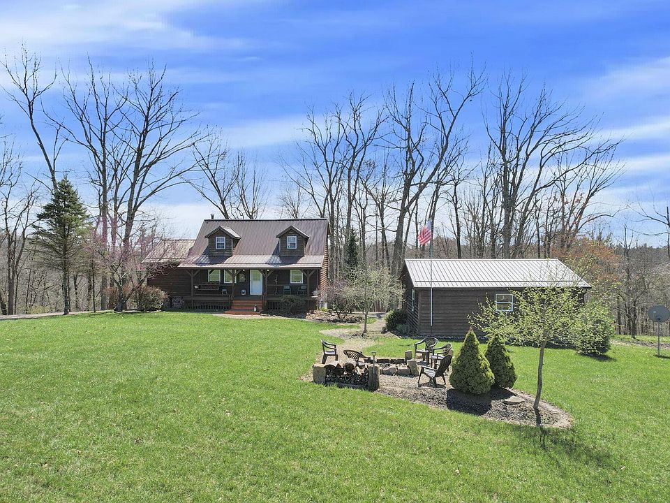 3 bedroom 2.5 bath home with full walk-out basement built in 2002. Large stone fireplace in the living room. Covered front porch and large rear deck. Cedar-sided home and detached 24 x 28 garage. 25 x 30 metal garage. Additionally, an incredible 32 x 56 x 12 Pro-Line Series Pole barn. Concrete floor, wood burner, propane heater, and built-in bar and storage area. Smaller pine log home with a half bathroom for guests built in 2010. Incredible property with great views! The seller is reserving mineral rights, but they are negotiable. Property is being sold as is. Located in East Muskingum LSD, and annual taxes are $2427.26.