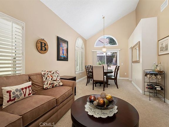 This wonderful home is located on a quiet street in the Villa Del Rio community in Yorba Linda. As you approach the home you are greeted by a private and well landscaped courtyard leading you to the entry. Upon entering the home you will notice the spacious layout of this 3 bedroom, 2.5 bath home with 1800 square feet of living space. Off the tiled entryway you will notice the high ceilings as you step down into the carpeted living room with a tiled fireplace and many windows framed by white plantation shutters. From the living room you look into the dining room which looks into the kitchen and backyard through the large sliding glass door. The remodeled kitchen includes tiled floors, newer cabinets, granite countertops, tumbled travertine backsplash and stainless steel appliances. From the kitchen you look into the dinette and family room which also includes a slider opening to the yard. On the main floor you also have a powder room for guests and direct access to the two car garage. Upstairs you will find all 3 bedrooms and 2 of the bathrooms. The large master bedroom is framed by vaulted ceilings with large windows also covered in plantation shutters. A recently remodeled ensuite master bathroom includes a double vanity with wonderful quartz countertops and a beautifully tiled walk-in shower with sliding glass door. Down the hall you will find two spacious bedrooms with vaulted ceilings and the hallway bath with a travertine tiled tub-shower and single vanity. Outside in the serene backyard you can enjoy peace and quiet while surrounded by mature trees and greenery. Other upgrades of the home include newer dual pane windows, recessed lighting and a newer HVAC system. Enjoy the benefits of being in the award winning Placentia Yorba Linda School district with Bryant Ranch Elementary, Travis Ranch Middle and Yorba Linda High School. Also conveniently located near Brush Canyon Park sports courts and play area, new dining restaurant and convenient access to the 91 and 241 freeways.