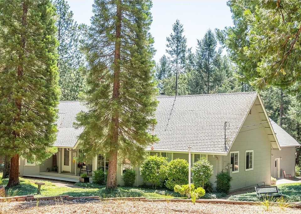 AMAZING IDYLLIC HOME AND SETTING! Here is the one you have been waiting for! This exceptional home and property has so much to offer, 3-Bedrooms, 2-Bathrooms, 1,951+/-SqFt, on a enchanting 3.01-Acre parcel. Some of the many features of the home include the attractive covered front porch, large open living room with soaring vaulted ceiling, wood laminate flooring, freestanding woodstove with rock hearth, ceiling fan, skylights and sliding glass door to the oversized covered deck, sizable dining area open to the living room and kitchen area, updated kitchen with dining nook, granite counters with tile backsplash, modern stainless appliances, bar area with ample room for seating, abundant cabinetry and nice views of the front yard, separate indoor laundry room with extra storage and deep sink, oversized master suite with ceiling fan and windows to let in the bountiful natural light, sizable walk-in closet with cedar paneling, updated en-suite bathroom with granite counter, dual sink vanity & roomy step-in shower, split bedroom floor-plan with updated guest bathroom including granite counter and tup-shower combination & two guest bedrooms with pleasing views of the ground and good closet space in each, attached two car garage with bountiful storage cabinetry and an additional oversized attached workshop area. Outside you will continue to be impressed as you soak in the beautiful covered deck area, fenced area with brick patio & walkway with built-in seating & fire-pit area, cross-fenced garden area & chicken coop, two oversized steel carports perfect for the RV & boat or any other toys, detached shed and circular concrete driveway with gorgeous landscaping. Don’t miss the newer 22KW backup generator, two whole house fans, freestanding gazebo in the trees or the walking pathways in the yard. Timber Ridge Dr. is one of Magalia’s most highly sought locations and when you take a look at this spectacular home you will understand why. This beautiful property offers an unparalleled opportunity. Abundant recreational opportunities in the area include lakes, hiking, biking, fishing, hunting, ATV and dirt-bike riding, canoeing, kayaking and much more! Take a look at this tremendous property today and you may never want to leave!