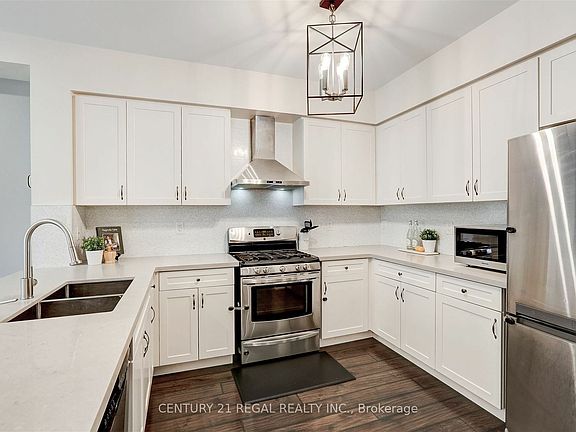 Welcome to this beautifully updated executive townhouse situated in an intimate enclave of only 37 residences. This home offers three spacious bedrooms and four updated bathrooms, making it ideal for both families and professionals alike. The modern kitchen is a true highlight, featuring sleek quartz countertops, high-end stainless steel appliances, and a convenient breakfast bar, perfect for casual dining or entertaining. The open, flowing layout allows for a seamless transition between spaces, creating a warm and inviting atmosphere throughout the home. Located in a family-friendly neighborhood, this townhouse combines luxury with comfort and a sense of community. The exclusive setting provides privacy while being close to all essential amenities. This is a rare opportunity to be part of a sought-after enclave with a perfect balance of modern living and neighborhood charm. The oversized primary retreat is a true sanctuary, offering ample space to unwind and relax. It features a luxurious 4-piece ensuite with walk In shower and separate deep soaker tub, providing both comfort and privacy, as well as a spacious walk-in closet that caters to all your storage needs. This serene retreat enhances the feeling of luxury and offers the perfect escape at the end of a busy day. 2 other bedrooms have upgraded custom built-in closets and are ideal for a small family or office space. The fully finished basement offers versatile space, ideal for a recreation room, home gym, or children's playroom, tailored to your lifestyle needs. It also includes an upgraded 3-piece bathroom, adding both convenience and functionality to this flexible living area. Second floor boasts a dedicated laundry room, making everyday chores easier and more accessible. This thoughtful feature adds practicality to the homes modern design. Located in Top Ranked Vista School District! Close to major highways, Hospital, shopping centers, restaurants, transit and other amenities.