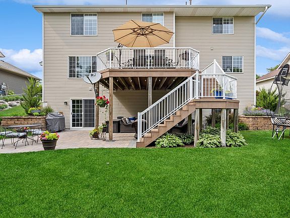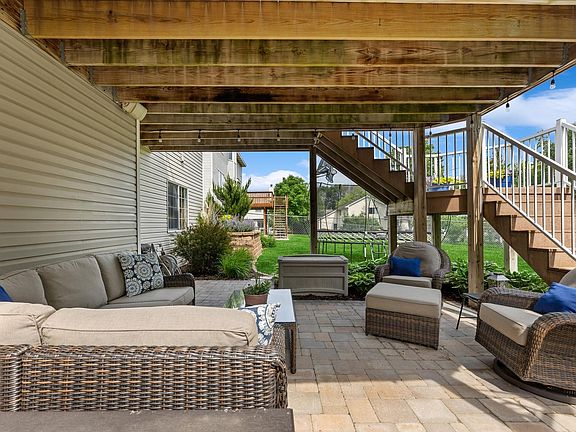 Entertaining friendly home w/updated kitchen open to dining room & main level family room. Off the dining room is a 20x16 deck w/composite decking & metal railing that will never need stain. Paver patio below the deck is the perfect place to be if you need to get out of the sun. Plenty of room to play yard games. Finished w/o basement is another great place to entertain w/wet bar, dishwasher & full size refrigerator. Fully fenced in yard is beautifully landscaped & has irrigation system. On main level, in addition to the updated kitchen, is a newly remodeled flex room w/Cambria countertops & additional cabinets. This home has abundant storage, closets & built-in cabinets. It also offers 4 bdrms on the UL plus an additional (5th) bdrm in the bsmnt. The primary bdrm is large & has an updated private bath along w/a large walk-in closet. Both the primary bath & the ¾ bath in the bsmnt have heated floors. The other 3 bdrms on the UL are larger than you see in most new construction.