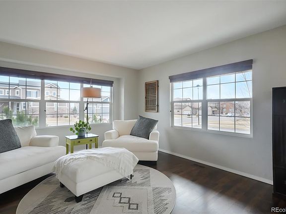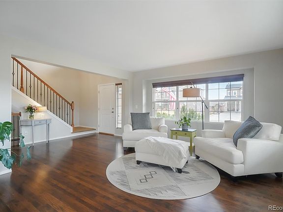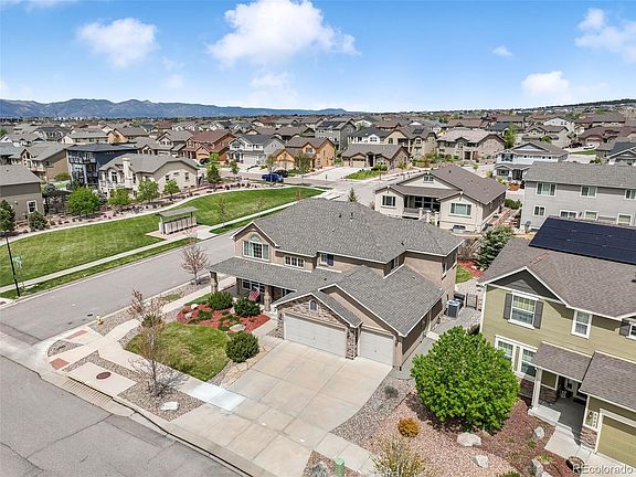 Welcome to this stunning two-story home on a spacious corner lot in the highly sought-after Wolf Ranch neighborhood! Perfectly situated within walking distance to top-rated elementary schools, parks, scenic walking trails, and the community lake, this home offers both convenience and lifestyle. As you arrive, you’ll be captivated by the home's charming stone and stucco exterior and the expansive wraparound front porch. Step inside to find gleaming hardwood floors and a bright formal living and dining room filled with natural light. The heart of the home is the beautifully appointed kitchen featuring quartz countertops, rich wood cabinetry, updated appliances, and a gas cooktop—ideal for both everyday living and entertaining. The cozy living room boasts a striking floor-to-ceiling stone fireplace and large windows that flood the space with light. A main-level laundry room and half bath add to the convenience. Upstairs, the spacious primary suite offers abundant windows, a luxurious five-piece bath with quartz countertops, and a custom walk-in closet. Two additional bedrooms and a full bath with double vanity complete the upper level. The fully finished basement expands your living space with a generous recreation room, gas fireplace, and plenty of room for a gym or media area. A fourth oversized bedroom with a huge walk-in closet and a full bathroom makes a perfect guest suite. Enjoy outdoor living in the beautifully landscaped, fully fenced backyard with a large concrete patio—ideal for summer gatherings. Located just off the Powers corridor, close to shopping, dining, entertainment, military bases, and I-25, this home offers the best of Colorado living. Don’t miss this rare opportunity in a vibrant master-planned community!