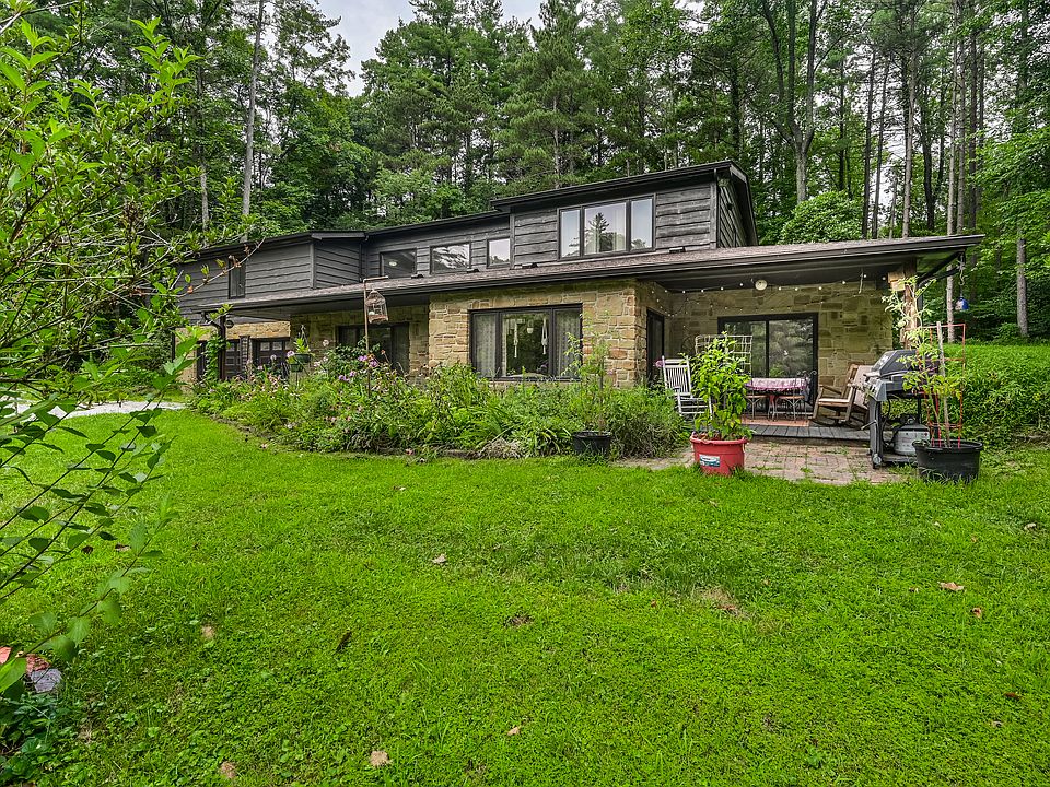 Your Dream Home Awaits on 15+ Acres of Brown County Bliss. Tucked away on a peaceful dead-end road in northern Brown County, this stunning property offers the ultimate retreat. Step inside this custom-built, nearly 3,000 sq ft home and be greeted by an impressive open-concept living space with soaring cathedral ceilings. The home's design focuses on bringing the outdoors in, with every window offering a picturesque view of your private 3/4 acre stocked pond. The main floor features a massive master suite, providing a luxurious sanctuary to unwind. The kitchen is a chef's delight, with newer stainless steel appliances. Outside, the possibilities are endless. The 15+ acres of wooded land are a nature lover's paradise, complete with a playful creek and an abundance of wildlife. Fenced backyard. Pear, Peach and Apple trees! The covered patio is an idyllic spot to relax and watch the sunrise over the water. For the hobbyist or craftsman, an 18'x24' finished and heated workshop with an overhead door is attached to a generous 47'x24' three-sided pole barn, offering plenty of room for projects and equipment. This rare gem combines seclusion with accessibility. You're just a 12-minute drive from the vibrant town of Nashville, home to charming shops, eateries, the Music Center, and Brown County State Park. High-speed fiber internet ensures you stay connected while enjoying the tranquility of country living.