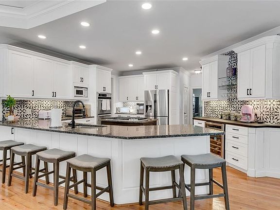 Welcome home to this stunning blend of luxurious living & beautiful stone craftsman style designed home in the prestigious 24/7 gated golf community of Laurel Springs with 3 car garage, spacious rooms, & situated in a cul-de-sac only a short walk, bike, or golf cart ride to all the resort amenities that this neighborhood has to offer! The grassy front yard & curb appeal is a seamless blend of stone façade w/ rocking chair front porch, massive wood beams, dark trim, & custom shutters! As you enter, you are greeted by a two-story foyer w/ a view of the upper floor catwalk balcony, lightly stained hardwood floors, high-end crown molding & trim, & an executive home office on the right featuring built-in cabinetry & French door. A bright large dining room to your left has upgraded window cased opening w/ transom windows & wainscoting. Straight ahead is the massive family room featuring coffered ceiling, fireplace, built-in cabinetry, & windows looking out onto the back porch making this room the perfect place to gather! Head into the spacious eat-in updated chef’s kitchen that showcases white shaker cabinets, custom tiled backsplash, dark cooking kitchen island, separate pantry, peninsula w/ room for 6 bar seats, sleek stainless steel appliances w/ double oven, granite countertops, & perfect coffee or wine bar w/ built-in wine cooler, floating glass shelves, & butcher block countertop. This entertainer kitchen also has a second fireplace w/ sitting room, 2 window seats, hidden TV cabinet, & an open breakfast area w/ room for a 6-seater table! Exterior door off breakfast area leads to a 3 season gorgeous back porch w/ a third stack stone fireplace perfect for watching football games in the fall and has a separate door out onto the back deck w/ built-in grill gas line, a gate to the driveway, & stone path down into the super low maintenance fenced in backyard w/ swing set. Located off the kitchen is a new beautifully remodeled separate laundry room w/ dual washer & dryers, a tiled dog washing station, & added cabinets & countertop for folding & storage! 3 car garage entry is located off laundry room for added functionality. There is a powder room also on main for any guests. Head down the front hall to discover the luxurious oversized primary bedroom on main featuring tall tray ceiling w/ custom chandelier, tons of bright windows, hardwood floors, door to back porch, & double door entry into the updated private spa like bathroom that has a soaking tub, totally separate dual vanities, tiled floors, & walk-in tiled shower w/ frameless glass door. Enter through another set of double doors to the fantastic walk-in closet w/ wall mirror & two separate sides & a built-in LG clothing steamer. Head upstairs to immediately find a media room that has endless options as a playroom, game room, second home office, or a potential 4th upper bedroom w/ an unfinished closet. Large storage closet is across from this room. Check out the front facing bedroom w/ a walk-in closet & wonderfully remodeled private bathroom ensuite w/ clawfoot tub w/ designer tile & vanity. Two other bedrooms share a connecting also totally remodeled Jack & Jill full bathroom w/ separate vanities designated to each bedroom. Make your way down to the open terrace level & find a super spacious living room complete w/ a kitchen & bar, plenty of room for gathering & games, & exterior door to backyard leads to a covered stone outdoor patio! There are also two additional great sized bedrooms here w/ a full bathroom between them, a home gym, & plenty of finished storage rooms! This unbeatable location is in top tier sought after Lambert High District and has resort-like amenities including 24 hour gated security, private Jack Nicklaus Golf Course, beautiful clubhouse w/ full fitness facility, ample amount of lighted tennis & pickleball courts w/ team opportunities, end to end basketball goals, lap pool, kid’s pool w/ water slide, swim team, & a large playground!
