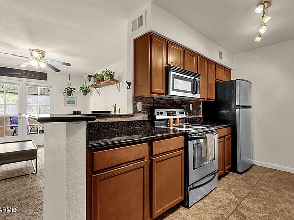 Ideally located in the heart of Scottsdale, this thoughtfully updated condo is convenient to all that Scottsdale is known for! Abundant windows make this home feel spacious and airy while the open floor plan boasts tons of space for entertaining. Modern conveniences throughout include granite counters, stainless steel appliances, upgraded bathroom finishes, and a stacked washer/dryer inside the home. Enjoy desert sunsets from your balcony or enjoy the sparkling community pool and spa! A well-appointed fitness center, barbecues, and community center means you won't have to leave home to entertain or workout. Explore the vibrant streets of Old Town, indulge in high-end shopping at Fashion Square, or take in the natural beauty of McCormick Ranch's scenic landscapes just minutes away.