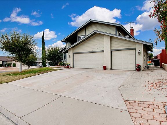 Beautiful 2 story home situated on a corner lot. Very well maintained with an open and spacious floor plan with high ceilings and a step down formal dining room. Kitchen with tile counter tops and eating area. Spacious family room with fireplace. All bedrooms are situated upstairs. The main suite has own bathroom with double vanity and walk in closet and a walk out balcony overseeing the backyard and a view the hills. All bathrooms are upgraded. Backyard is fully fenced with a covered concrete patio and a built in shed with electricity. Other features are covered front porch, linen closet 3 car attached garage, RV parking area. Within walking distance from entertainment, restaurants, and shops. Close to golf courses and freeways 60, 91 and 15.