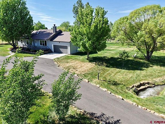 Beautiful Spring Creek setting on 2.8 irrigated acres. Home features an efficient geo-thermal heating and cooling system along with wood burning fireplace in the living room. This 3-bedroom, 2-bathroom home boasts a beautiful kitchen with stainless steel appliances and granite countertops, beautifully updated bathrooms, cork flooring throughout most of the home, and freshly painted interior and exterior. Step outside and fall in love with all this property offers, that include a 2 car attached garage, a 2 car detached garage/shop, RV and trailer parking, a paved driveway, a mix of mature and recently planted trees, underground sprinkling system and beautiful views of the rolling hills and Montrose valley from the back patio.