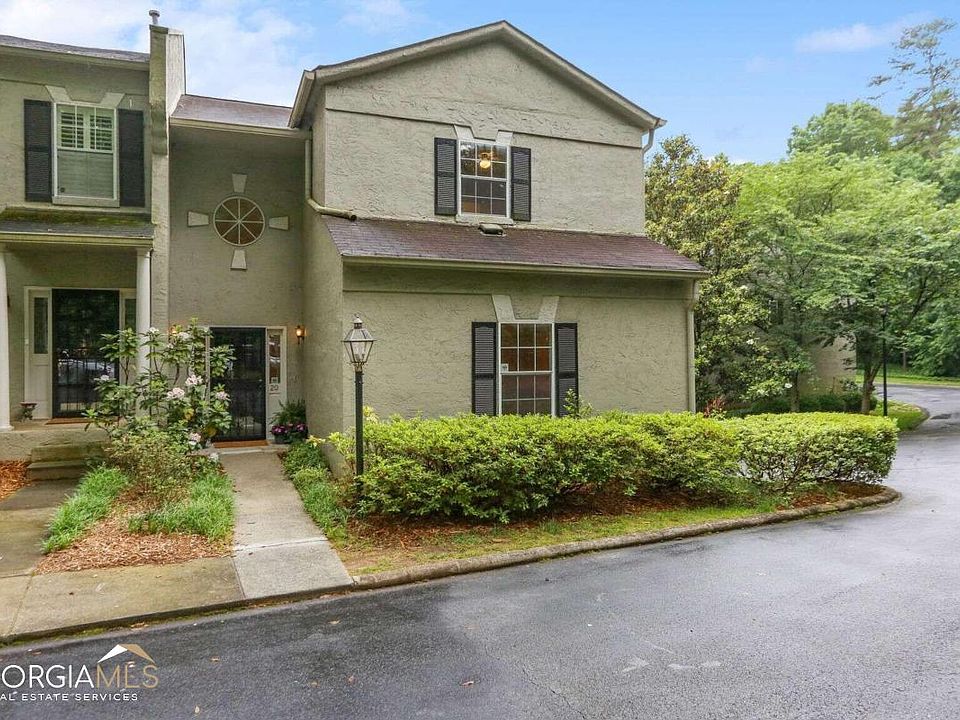 Welcome Home to this spacious 3 BRM/3.5BA end-unit townhome WITH a 2-car garage! Located in the charming community of Surrey Place, which is nestled in the heart of Sandy Springs! This freshly painted and move-in ready home is flooded with natural light, backing up to a large green space, that provides personal privacy and tranquility. The two-story entry is inviting and spacious, providing guests with a warm and bright welcome! The primary bedroom is located on the main level, with two large closets and plenty of room to accommodate his and hers! The Primary bedroom is adorned with a large private ensuite with walk-in shower and double vanity. The Open and airy main floorplan is accentuated with beautiful hardwood floors, perfect for entertaining! Conveniently situated, a full laundry room, provides plenty of extra storage and pantry space! Main level incorporates a renovated kitchen with freshly painted white and airy cabinets, granite countertops and Stainless Steel appliances. The kitchen seamlessly flows into the two-story cathedral fireside-great room, creates an expansive, yet cozy feel amongst a backdrop of a full wall of windows overlooking the large green space, which makes it feel like you are sitting in a treehouse during the spring and summer months! A wall of custom built-ins enhance the spacious great room for your favorite books, Nik-naks or a fun way to display a plate collection! A full-sized dining room enriches the main level with plenty of seating for family and friends, holiday parties and game-days! The upper level boasts new carpet and two oversized bedrooms, large walk-in closets, each with their own private ensuites! The terrace level offers an additional area that can be a flex space and/or a home office with plenty of storage! An over-sized two car garage provides additional storage for holiday decorations and more! This enchanting community offers neighborhood gatherings, walkability, is pet-friendly and has ample parking for guests! Close to everythingCaShopping, Dining, Sandy Springs Performing Arts Center at City Springs, I-285/GA-400, Marta, Perimeter Mall, Costco, Home Depot, Lowes and Hospitals/Medical Offices on Pill Hill! Location, Location, Location! This one is a GEM and wonCOt last!